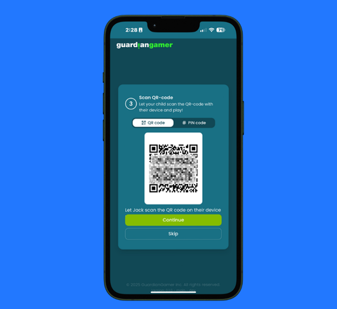 How do I connect my child's device to GuardianGamer? Open your GuardianGamer parent app to display a QR code, then have your child scan this code with their device's camera. After scanning, your child will launch the Gamer App (this connection only needs to happen once). Once connected, your parent app will automatically start receiving notifications and highlight reels from your child's gaming sessions. Your child can then log into Roblox with their existing account or create a new one, and you'll be ready to connect and discuss their gaming experiences together.