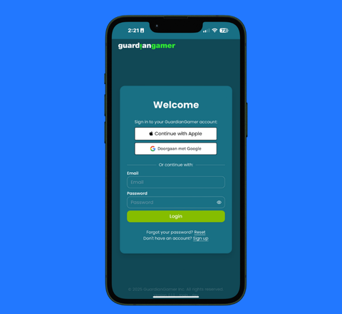 Create your GuardianGamer account using an Apple ID, Google ID or email.